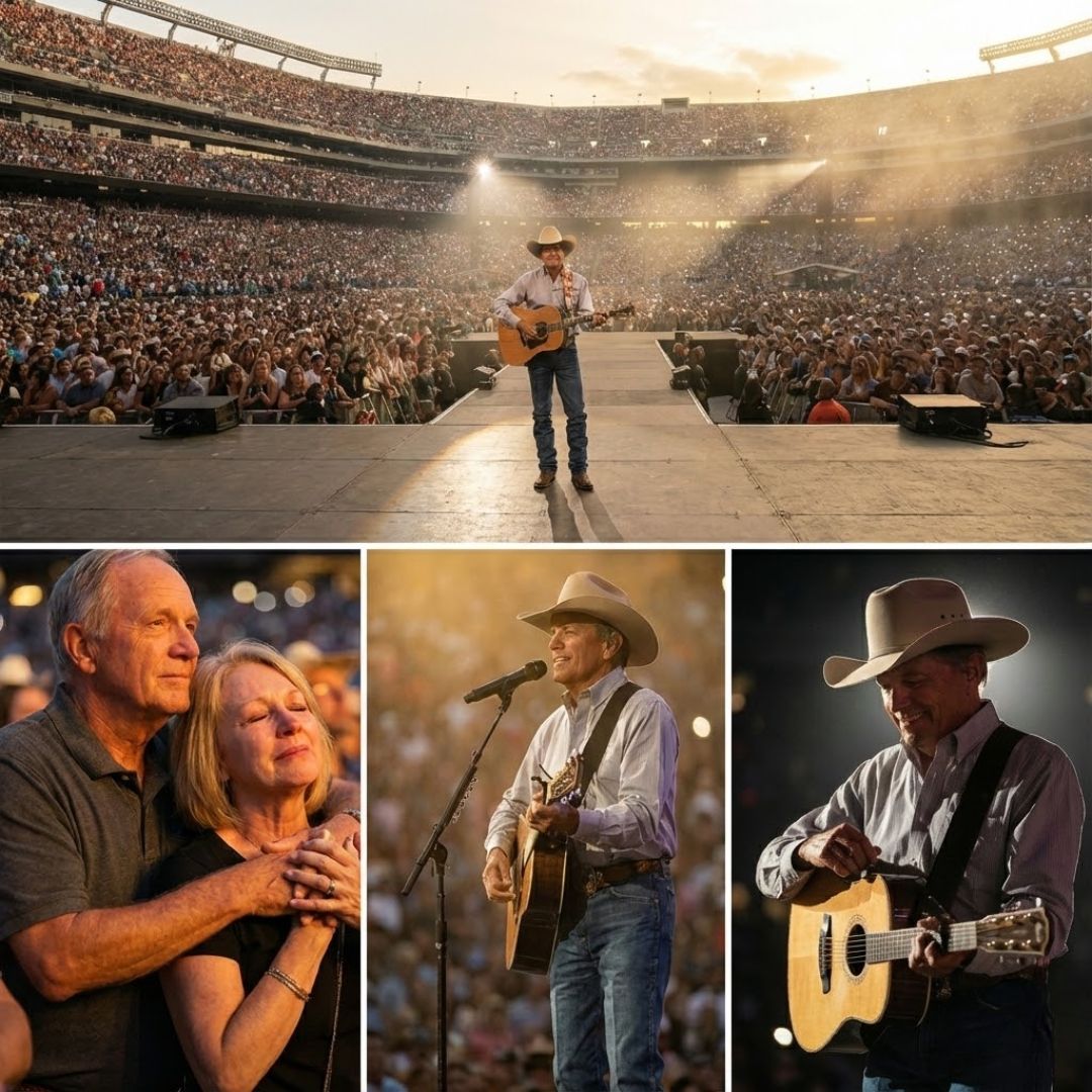 After more than five decades on stage, George Strait doesn’t sing at people. He sings with them. And in that shared quiet, even the largest stadium feels small enough to hold one more memory.