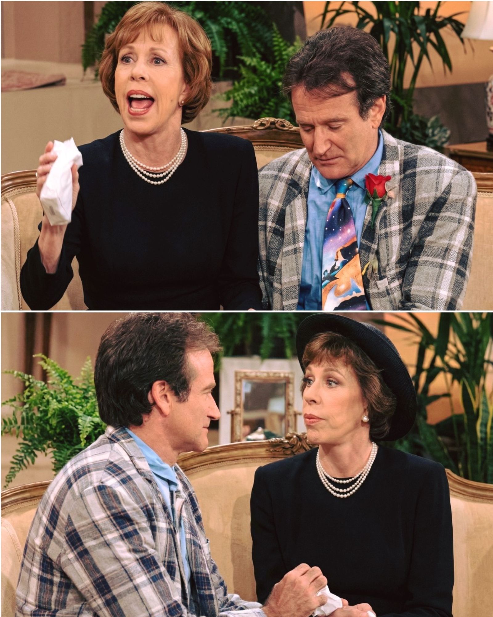 Carol Burnett sat at a funeral as a grieving widow, the kind of setup that depends on stillness, timing, and just enough restraint to let the joke build. Then Robin Williams entered, and any hope of restraint disappeared almost instantly. What followed was not polite comedy, not neat comedy, and certainly not safe comedy. It was the kind of performance that feels as if it is being invented right in front of your eyes because, in many ways, it was.
