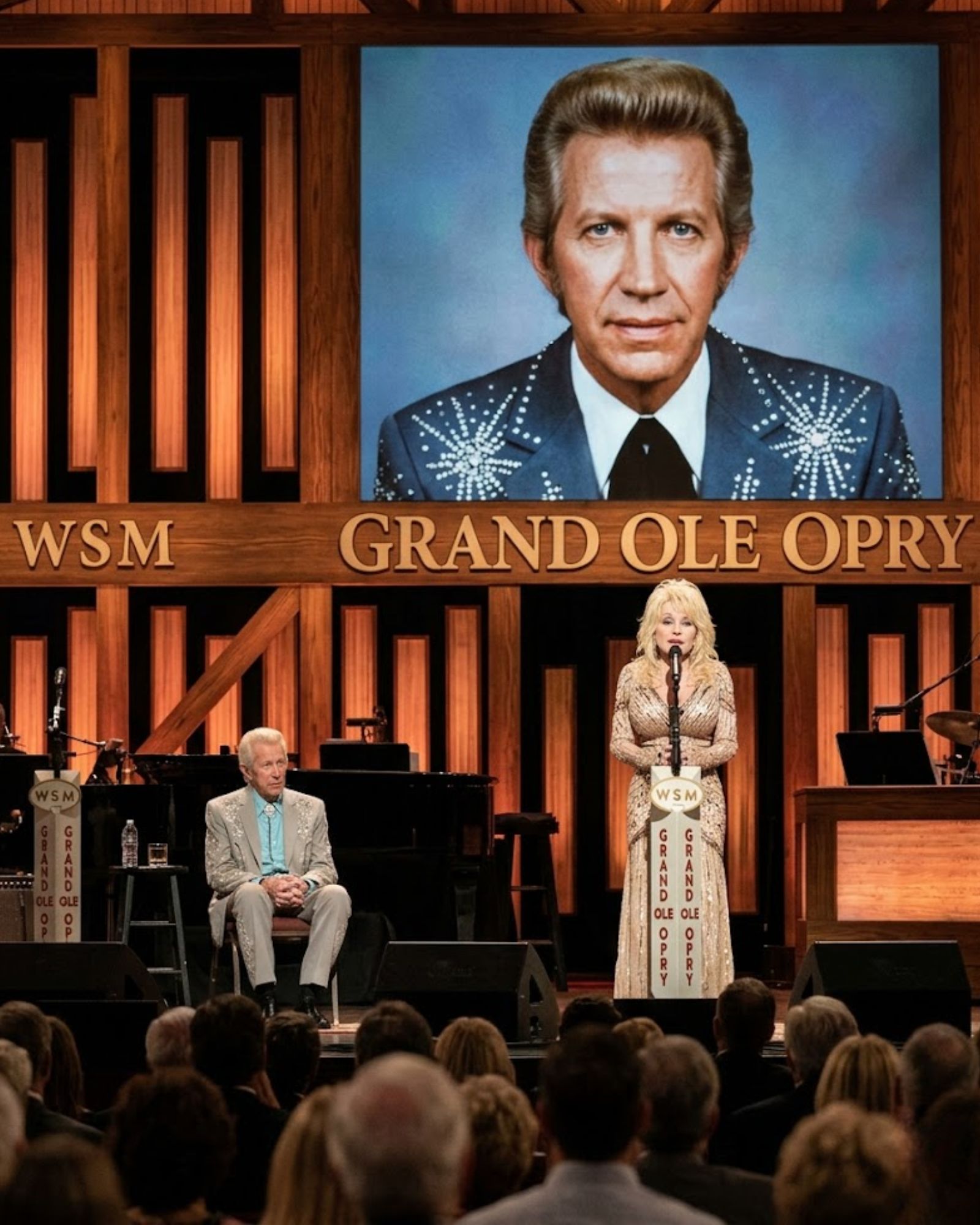 Dolly Parton looked out into the audience until Dolly Parton found Porter Wagoner sitting there. Porter Wagoner looked tired, thinner than before, but his eyes never left the stage.