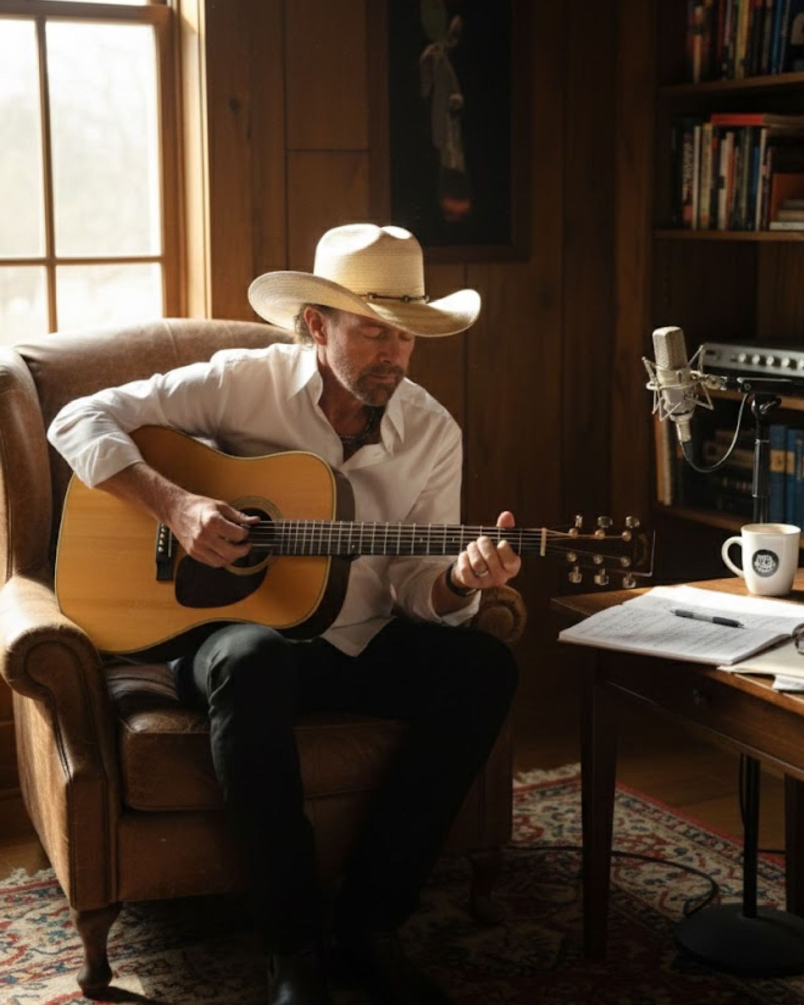 There was no final message sent into the digital world. No carefully typed goodbye. No last update meant to freeze a moment in time. In his final hours, Toby Keith didn’t reach for a phone at all. He reached for what had followed him through every chapter of his life. A guitar, resting nearby, familiar in weight and shape, its strings later found still warm, as if his hand had only just slipped away.
