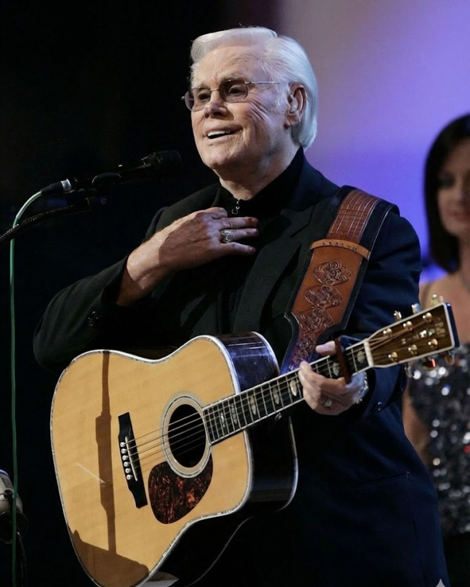 As the stage lights washed over his silver hair, the crowd rose instinctively. George reached for the microphone and rested his hand on it, lingering just a moment longer than usual. Some fans would later swear that pause meant something — a silent acknowledgment, maybe even a goodbye he didn’t yet understand.
