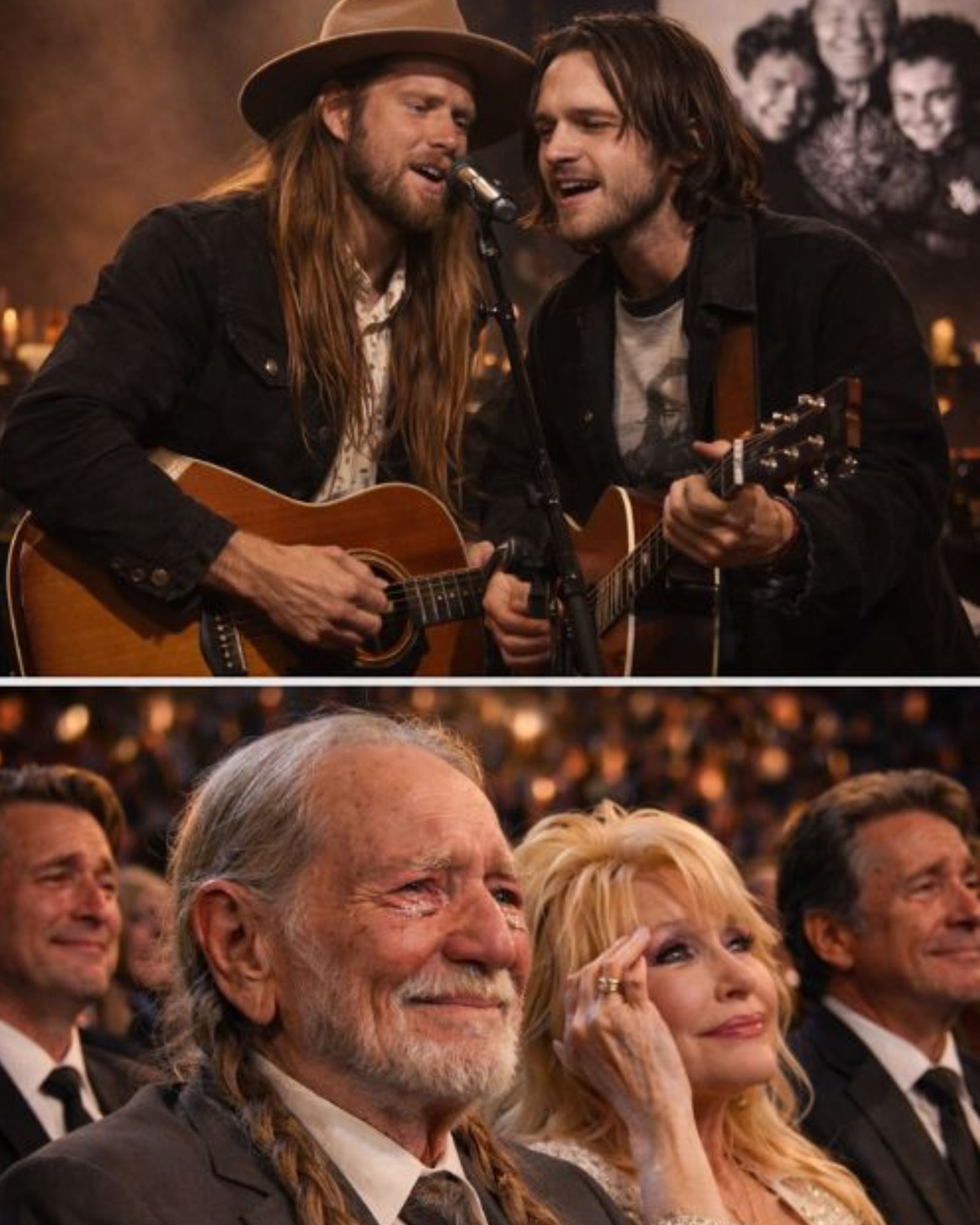 No dramatic setup. No long introduction. No spotlight demanding that the audience understand the weight of what was happening. Lukas Nelson and Micah Nelson simply walked out and took their places. Quietly. Almost carefully. As if the room already knew this was not something to be interrupted.